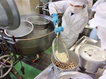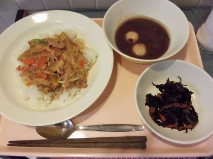 今日は、白玉もちを使ってお汁粉を作り、鏡開きの献立としました。