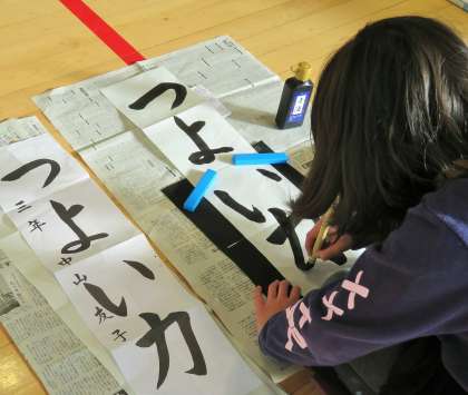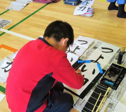 筆づかいの難しさに苦労しながら、「つよい力」を元気いっぱいに書き上げました。『つよい力』の言葉の通り、今年も様々なことに挑戦して、どんどん強く、たくましくなってほしいと願っています。