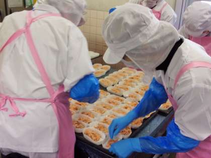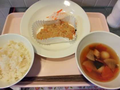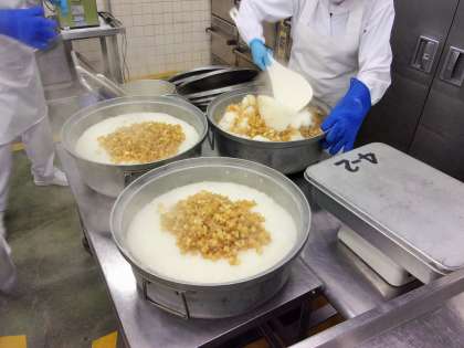 給食の七草ごはんは「スズナ(かぶ)」と「スズシロ(大根)」を使って作りました。