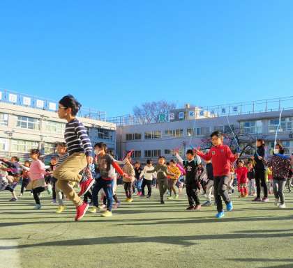 縄跳びは、様々なスポーツの基礎となる動きを学べる運動です。子どもたちは、リズムよく楽しく跳んでいました!