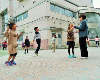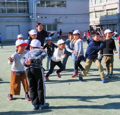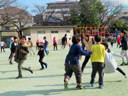 松丘小学校の休み時間は、子どもと教師が一緒に遊ぶ「共遊び」を奨励しています。遊びを通して、授業中だけでは分からない、一人一人のよいところに気づいたり、ほんの小さな変化や情報も、この共遊びの中から得られればと思っています。