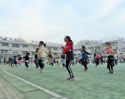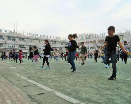 縄跳びは、リズム感や瞬発力、持久力など、スポーツにおける基礎的な能力が身に付く、理想的な運動ですので、これからも体育授業、休み時間などで取り組んでいきます。