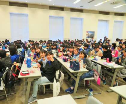 日産自動車追浜工場に到着しました。ゲストホールで待ちに待ったお弁当をいただきました。