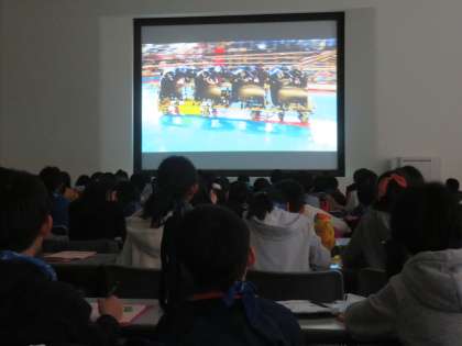 担当の方から事前の説明を受け、最先端の製造技術や製造プロセスについての映像をみせていただきました。工場内は徒歩とバスで移動です。塗装された車体を組み立てる様子や部品を取り付ける様子を見学しました。また、アクセルやブレーキ、ライトなどの最終検査をする様子や、日本国内や世界各国に出荷される検査に合格した車がたくさん並んでいる港も見学しました。工場内は撮影禁止のため、きびきびとした作業の様子や迫力は、子どもたちから聞いてください。