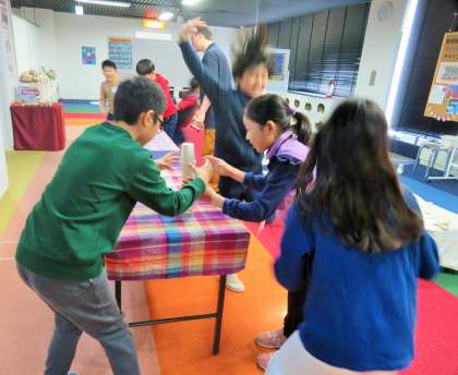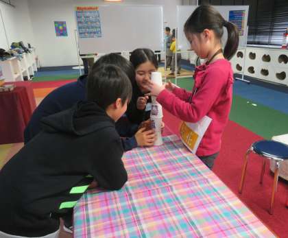 「異文化体験」のコーナーでは、海外のコミックや人形の展示、英語を使ったゲーム「トーテムポール」等を通して、異文化を知ることができました。