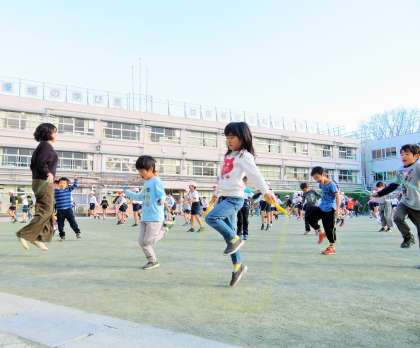 縄跳びは、リズム感や瞬発力、持久力など、スポーツにおける基礎的な能力が身に付く、理想的な運動ですので、これからも体育授業、休み時間などで取り組んでいきます。