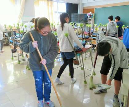 本校はとても古い校舎ですが、床を磨きながら心を磨く自問清掃に、これからも取り組んでいきます。