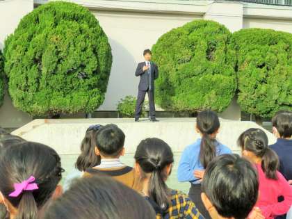 今日の全校朝会では、5年生の社会科見学の話をしました。5年生は先週「JXTGエネルギー根岸製油所」と「日産自動車追浜工場」に行って来ました。見学場所で興味・関心をもって、真剣に話を聞く姿勢、メモを必死にとる姿が大変立派でした。