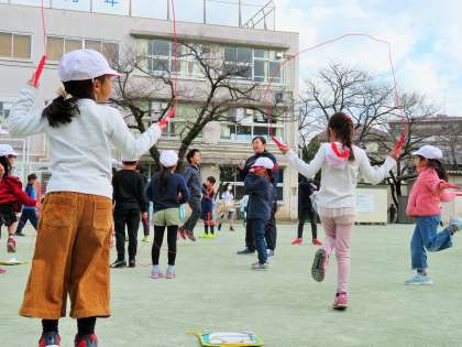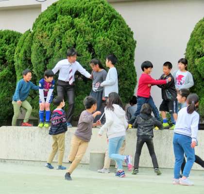朝は厳しい寒さでしたが、休み時間の校庭は、先生と一緒に遊ぶ子どもたちの笑顔でいっぱいです。私も「校長先生、一緒に遊ぼう!」と次々と声を掛けられます。