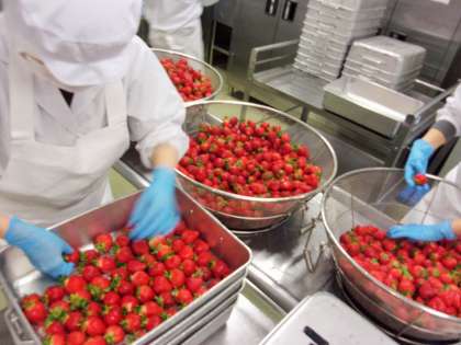 いちごは、へた側からとがった先に向かって甘みが強くなるので、へたを取ってへた側から食べてみましょう。