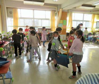 3学期も発達段階に応じた、自問清掃に取り組んでいます。1年生には少し難しい面もありますが、「掃除以外の話をしない清掃」、「無言清掃」そして、「自問清掃」へとステップアップしています。