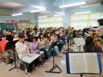 音楽の前田先生から「姿勢」など、心構えの指導をいただきながら真剣に取り組んでいます。
