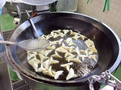 茹でてつぶしたじゃがいもなどの具をスパイスで味付けをし、薄い皮に包んであげたものです。
