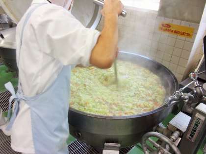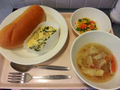 パイ生地やタルト生地に具材を入れて作りますが、給食ではカップに入れて作りました。
