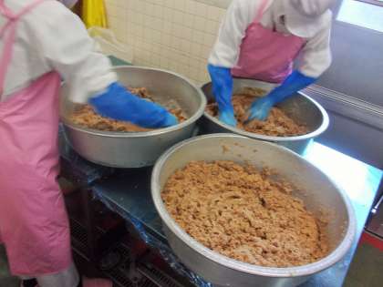 房総半島近くの海でとれた魚とみそを一緒にしてなめろうを作りました。