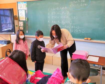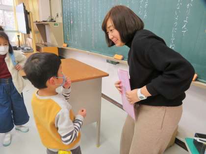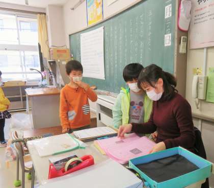 担任の先生から、3学期の通知表と修了証が手渡されました。
