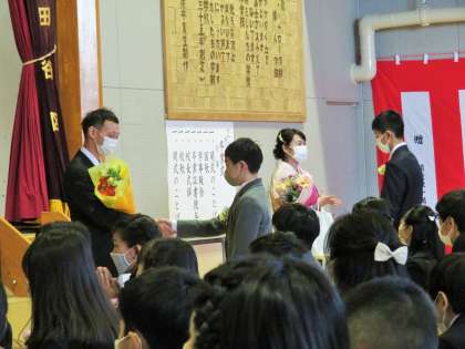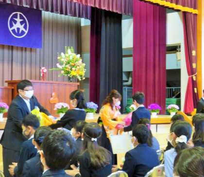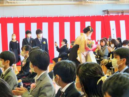 卒業対策委員さんから退場前に、サプライズのプレゼントがありました。担任の先生は、突然の出来事にびっくりでしたが、とっても感激をしていました!
