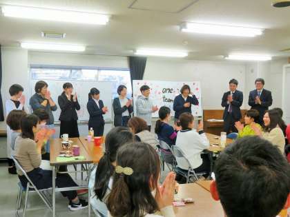 4月1日の勤務時間後には「お迎えの会」を行い、転入教職員とのコミュニケーションを深めました。