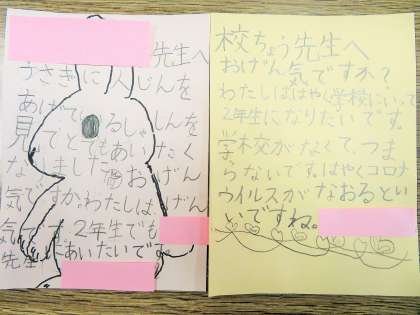 子どもたちから、元気が出るお手紙が学校のポストに投函されていました。やる気もいっぱいになりました!