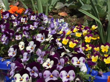 写真は、新2年生が育てているビオラです。綺麗な花を咲かせています。子どもたちにも見てもらいたい!