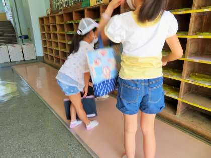 昨日、今日は学習課題の提出日です。初めての靴箱への提出なので、戸惑う場面もありましたが、お蔭様で混み合うことなく提出することができました。
