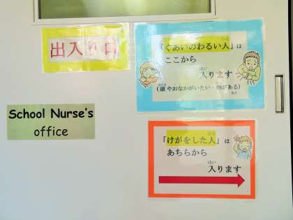 保健室のとびらは常に開けたままにしておきます。子どもたち一人一人が安心して、気持ちよく利用できる保健室にしていきます。