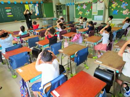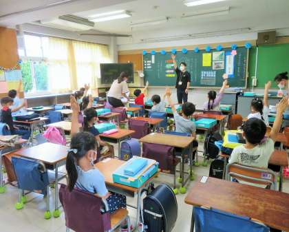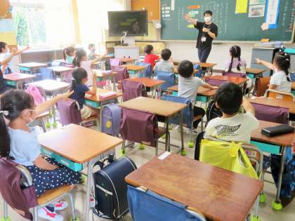 担任の先生もメリハリをつけながら、何とか緊張を解きほぐそうと、クイズや手遊び、ジャンケンなどを取り入れていました。