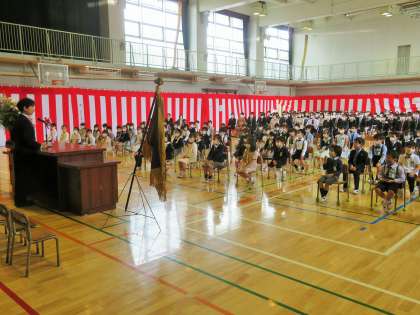 今日は令和2年度、優郷の学び舎 松丘小学校入学式が行われました。1年生は、とってもお行儀がよく、話を聞くのが上手でした。そして「起立」や「着席」の号令に合わせてさっと行動できるのが立派でした。「はい!」というお返事もびっくりするほど、大きな声ではっきりと聞こえましたので、とっても嬉しくなりました。後ろを向いて、お家の方々に写真を撮っていただいている時も少しも崩れないでしっかりとした姿勢でした。よくがんばりましたね!