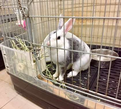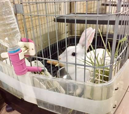 写真は、入学式後に早くも子どもたちの注目を集めていた本校の人気者「オセロ」と「ブラン」です。
