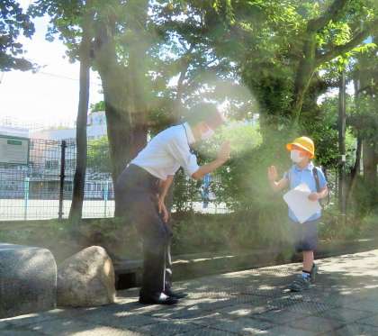 今朝も、南門であいさをしながら子どもたちを迎えしました。手を振りながらあいさつをしてくれる子や目を見てあいさつをしてくれる子が多くて嬉しいです。中には、その場で立ち止まって、気を付けの姿勢であいさつをしてくれる子がいたのでびっくりしました。