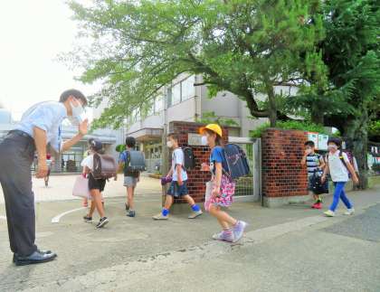 今日は分散登校12日目、午前は1〜2年生Bグループ、3〜6年生Aグループ、午後からは3〜6年生Bグループの子どもたちが登校です。
