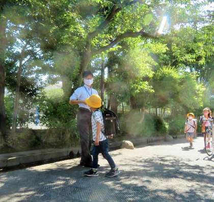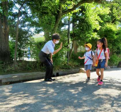 今日は分散登校13日目、午前は1〜2年生Aグループ、3〜6年生Aグループ、午後からは3〜6年生Bグループの子どもたちが登校です。