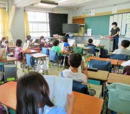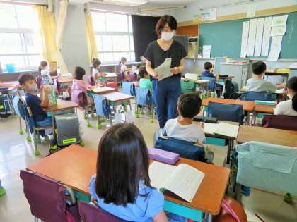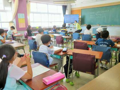 先生がプリントを配ると「ありがとうございます!」という言葉が返ってきます。先生も「なんていい子たちなの!」と嬉しそうに配布しています。