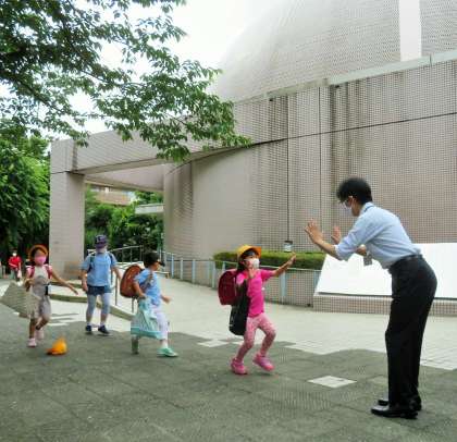 今日は分散登校14日目、午前は1〜2年生Bグループ、3〜6年生Bグループ、午後からは3〜6年生Aグループの子どもたちが登校です。