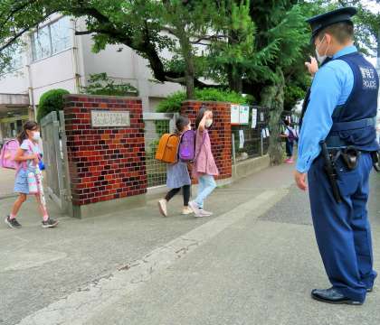 下校の様子です。おまわりさんも見守ってくださっています。