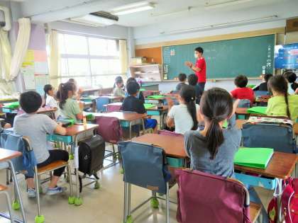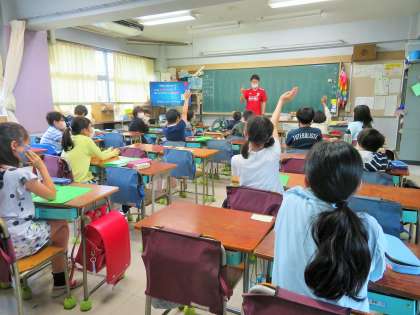 英語専科の授業がはじまり、楽しそうに取り組んでいます。