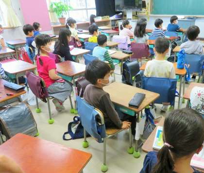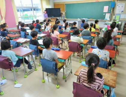 一つずつお兄さん、お姉さんになり、表情の引き締まった子どもたちが、一斉に放送に注目をしました。