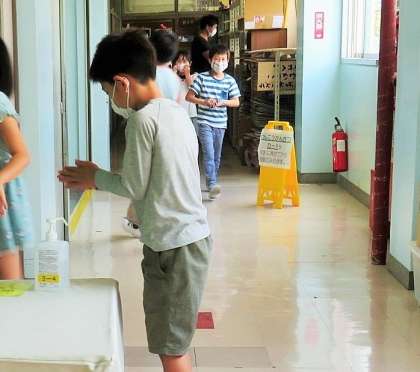 遊んだ後は、石鹸での丁寧な手洗いと、アルコール消毒です。