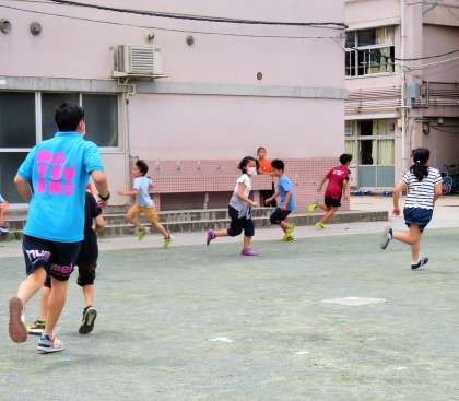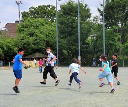 5・6年生は、昼休みの時間に掃除をして、掃除の時間に校庭遊びです。校庭、体育館、屋上など、時間と場所を分散させて遊んでいます。