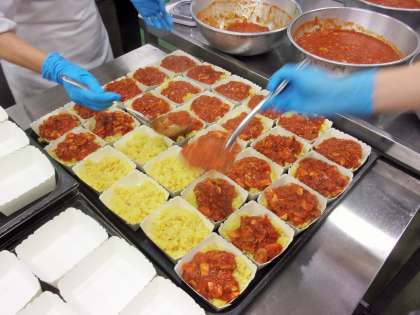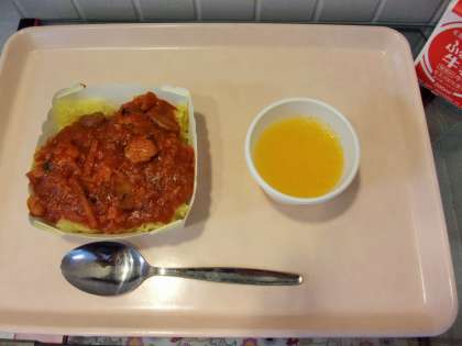 カレー粉と一緒にお米を炊き、そのうえにトマトソースをかけてオーブンで焼きました。