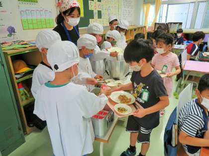 おいしい給食に、笑顔がいっぱいの子どもたちでした。