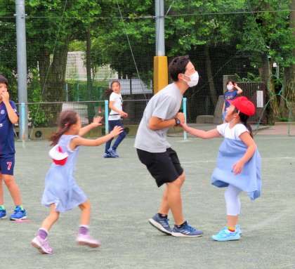 松丘小学校の休み時間は、子どもと教師が一緒に遊ぶ「共遊び」を奨励しています。