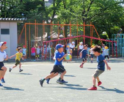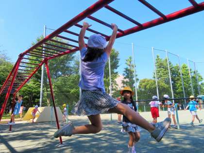 松丘小学校では、始業前の朝遊びに毎日取り組んでいます。ボール遊びや一輪車、うんてい、登り棒、鉄棒などで遊んでいる子がいっぱいいます。