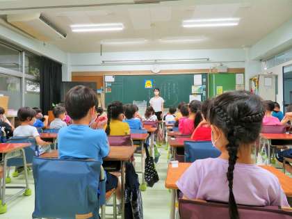 企画代表委員の子どもたちが、「松小SNS3つのルール」について説明をしてくれました。生活指導主任からは、夏休みの生活について話がありました。