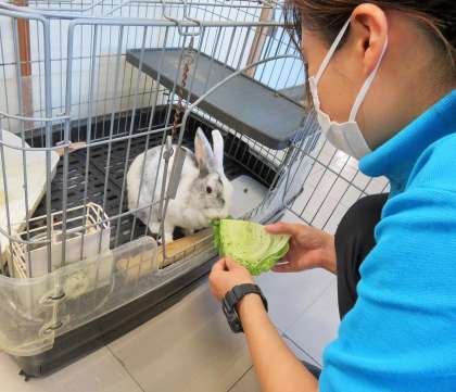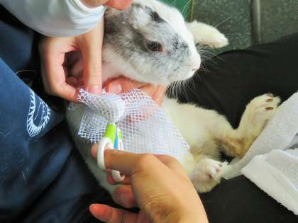 飼育委員会の先生がウサギの爪切りをしました。ウサギにとっては恐怖でしかない爪切りですが、ほぼ暴れることなく行うことができました。