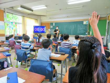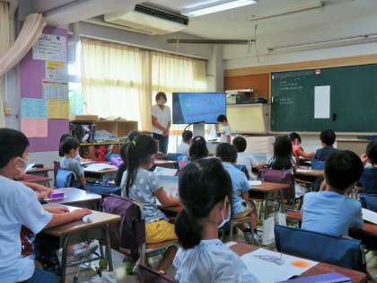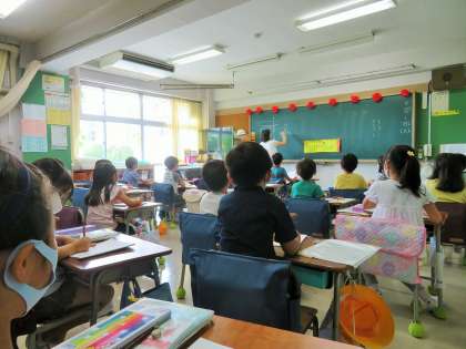 始業式後の教室の様子です。係り決めをしたり自由研究の発表をしたり、授業がはじまったりと、それぞれの活動に取り組んでいます。