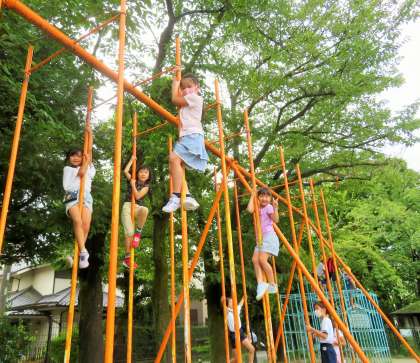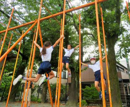 ランドセルを置いて、一定の準備が整った子から校庭に出てきて遊んでいます。この、朝から「ワクワク!」「ドキドキ!」する感覚が、子どもたちの脳にはとってもいい刺激を与えていて、授業では集中ができるのです。