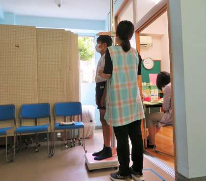 今年度2回目の身体計測がありました。ソーシャルディスタンスが、しっかり守れていて感心しました。