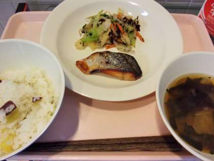 今日は、秋が旬のさつまいもを使ってさつまいもごはんを作りました。