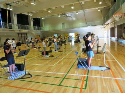 運動会に向けて開会式で演奏予定の「ファンファーレ」と、閉会式で演奏予定の「校歌」を練習をしています。全校の子どもたちに演奏を聞いてもらいたいです!